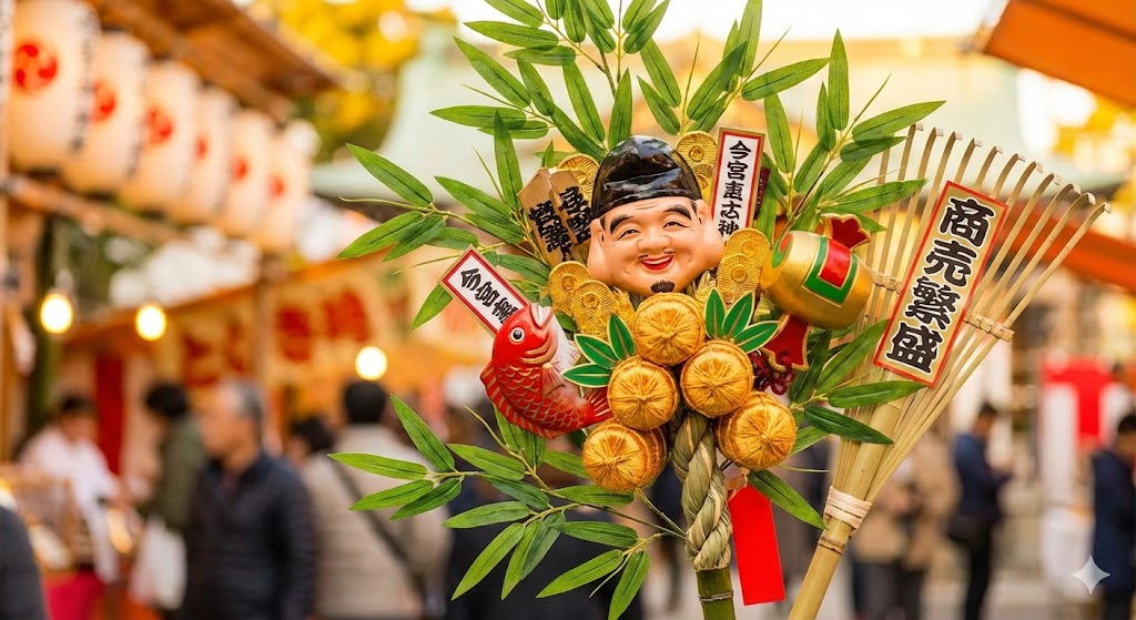 境内は「商売繁盛で笹持って来い」の威勢の良いお囃子が響き渡り、新しい年への活気に満ちあふれて